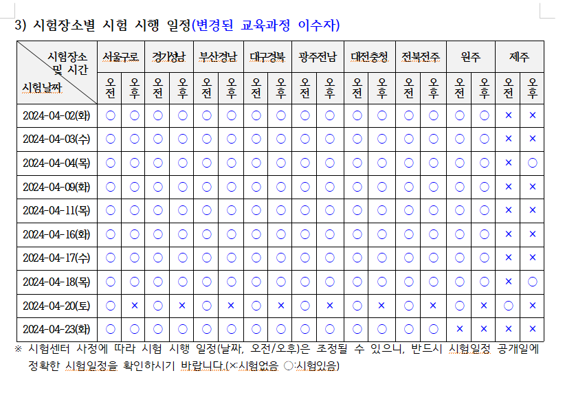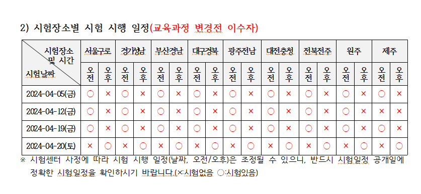 24년도 12월 31일까지 종전규정에 따른 시험에 응시할 수 있으나, 만일 교육과정 변경 전 이수자가 개정된 교육과정 시험에 응시할 경우에는 합격이 취소가 될 수 있으니 이를 잘 확인하시고 응시하셔야 합니다.