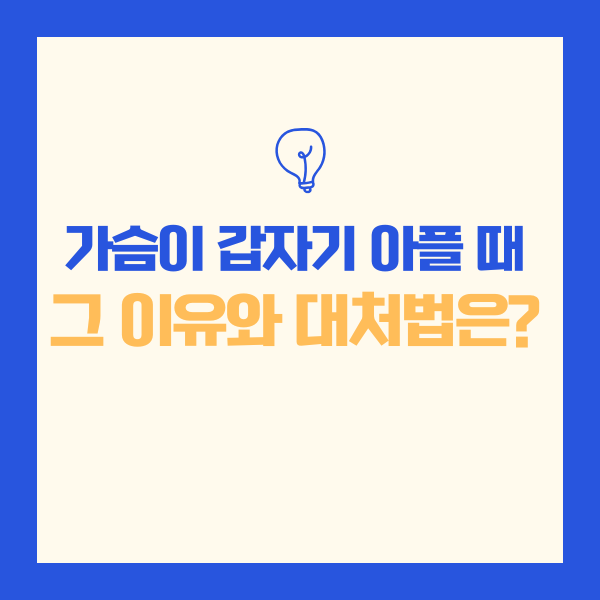 갑자기 가슴이 아프면 누구나 놀라고 당황하기 마련입니다. 가슴 통증은 단순히 근육통에서부터 심장과 관련된 심각한 문제까지 다양한 원인으로 발생할 수 있는데요. 오늘은 가슴 통증의 흔한 이유와 대처법을 알아보겠습니다.