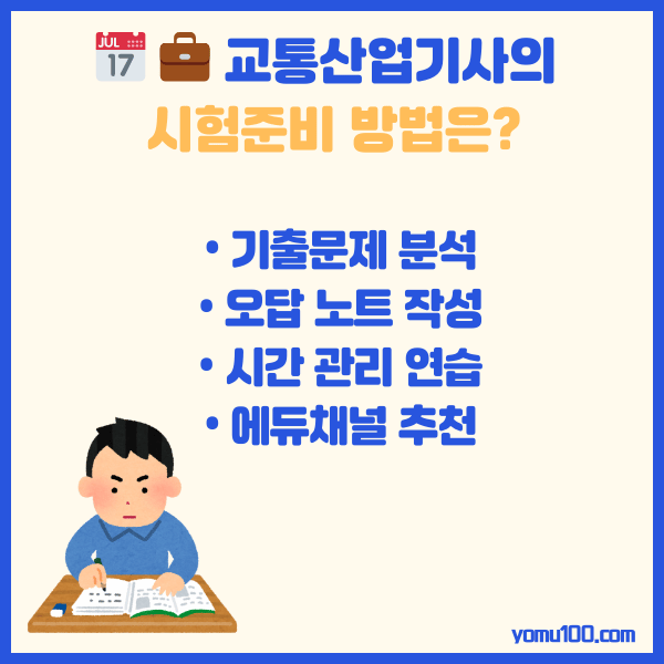 교통산업기사는 단순한 자격증이 아니라, 안전하고 효율적인 교통 체계를 만드는 데 기여하는 전문가로 가는 첫걸음입니다. 도시의 성장과 함께 전문성을 인정받을 기회를 잡고 싶다면, 지금부터 차근차근 준비해보세요.