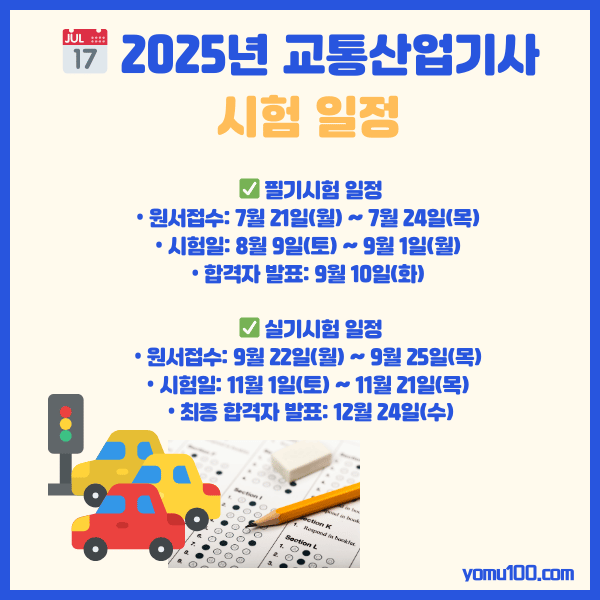 오늘은 교통산업기사의 역할, 2025년 시험 일정, 준비 방법, 그리고 이 자격증의 경쟁력에 대해 자세히 알아보겠습니다.