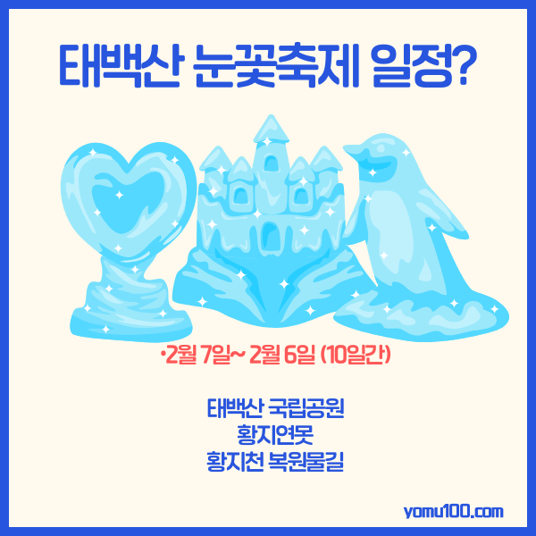 2025년 태백산 눈꽃축제는 2월 7일부터 2월 16일까지 총 10일간 진행됩니다. 축제가 열리는 주요 장소는 다음과 같습니다.
